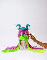 Having "de-wilded" animals for human needs, are pets still animals or rather, are they an extension of our human selves? DISPLAY OF AFFECTION No.5 - Puppy is a macramé human puppy hood. It is a mask to be worn by a human in "Pup Play" - a type of kink culture role-play where individuals take on the role of a puppy. There are infinite ways to express yourself as a pup, but the basic premise is to let go of your human world and focus on the here and now through the personality of a puppy. The name of this human macramé pup is Hitch.