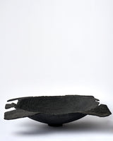 Ryujin carefully turns the wood on a lathe to create high-sided bowls, urns and platters based on the forms of sacred Japanese temple vessels. During the long air drying process, the forms begin to shift as the green wood loses moisture. The final dramatic transformation takes place as the timber chars and splits during the unpredictable burning process.