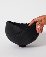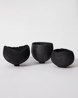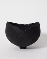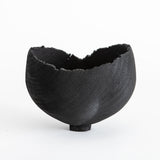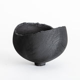 Ryujin carefully turns the wood on a lathe to create high-sided bowls, urns and platters based on the forms of sacred Japanese temple vessels. During the long air drying process, the forms begin to shift as the green wood loses moisture. The final dramatic transformation takes place as the timber chars and splits during the unpredictable burning process.