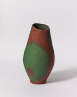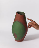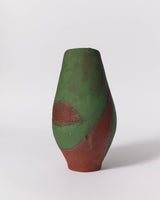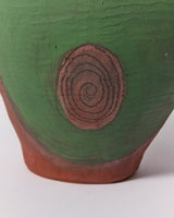 Green Circle on Mahogany is a functional, decorative vessel perfect for floral arrangements or simply as a centrepiece. This piece was an experiment of complementary colours using the red clay body and a chrome oxide.