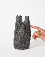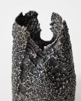 The vessels are part of the continued Melancholy project where materials are experimented through processes and texture. By applying unorthodox techniques the material is eaten away, leaving a remnant of it's previous shape. The hand sculpted form guides how the material reacts, resulting in unexpected forms. This leaves a unique surface texture completely individual to each piece, which is then accentuated after being cast in aluminium, also adding notions of gothic characteristics.