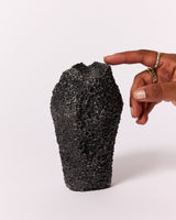The vessels are part of the continued Melancholy project where materials are experimented through processes and texture. By applying unorthodox techniques the material is eaten away, leaving a remnant of it's previous shape. The hand sculpted form guides how the material reacts, resulting in unexpected forms. This leaves a unique surface texture completely individual to each piece, which is then accentuated after being cast in aluminium, also adding notions of gothic characteristics.
