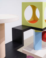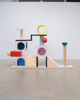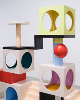 Drawing inspiration from pop culture and modern design, with a subtle homage to the iconic Memphis movement, this opulent cat tower is a testament to contemporary aesthetics. Crafted from high-quality plywood, solid timber, and adorned with vibrant, long-lasting paint, it also features sustainable sisal for the scratching posts. Serving as a modern playground for cats, this striking piece seamlessly integrates into your home decor, standing out as a captivating focal point while effortlessly blending with your other cherished design pieces.