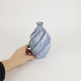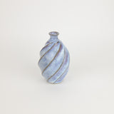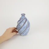 A small twisted vessel with a short neck finished in Terunobu Hirata's pale blue moon glaze.