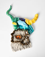 A glazed ceramic wall hanging inspired by Mesopotamian artefacts, handmade in Melbourne by Ara Dolatian.