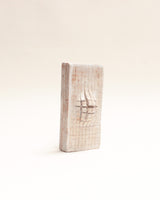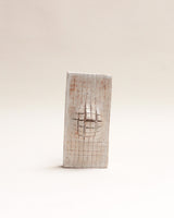 Material: solid sliced porcelain and reclaim form with rutile and tin matt glaze.