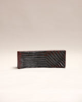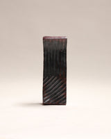 Material: solid carved and formed brick black mid fire clay and reclaim blend with iron oxide rutile and tin glaze.