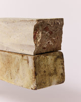 Material: one part reclaimed clay solid form with oxide under dolomite glaze. Second part reclaimed clay solid form with oxide over dolomite glaze