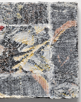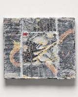 Material: Found textile, acrylic polymer gap filler, acrylic mediums and adhesive on board