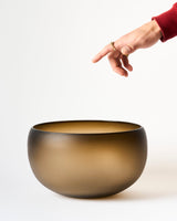 The frosted exterior and shiny interior provides a duality of surfaces for light to be absorbed and evenly emitted giving these prominent pieces a magnificent presence.