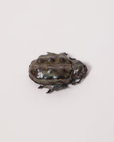 Samantha Dennis creates jewellery pieces to contemplate the phenomena of life and our (human) relationship to it. She is fascinated by natural history practices, particularly taxonomy (the science of ordering and classifying), and how the scientific way of looking at nature is often at odds to commonly held personal sentiments; for example, a coleoptera collection of carefully pinned and labelled insects conjures curiosity, inviting close inspection and generating an appreciation for the intricate beauty and design of the creatures, yet many people will still respond with horror, fear, or disgust at the idea of getting so close to the same creature ‘in the wild’. Dennis’s engagement with material is not coincidence, each substance is considered and engaged for its historic and social meanings, adding undercurrents of information and implication: pieces in the Coleoptera series are crafted with the likes of porcelain, sterling silver, and sometimes pearls. The pieces in the Coleoptera series are unique state items unless otherwise noted.