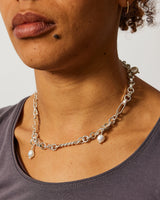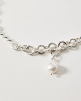 Sterling silver necklace made from 925 Silver, each link is formed, soldered and finished by hand. Embellished with fresh water pearls.