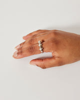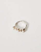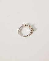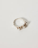 Made from 925 Silver, this ring features a molten texture encasing three cultured freshwater pearls.