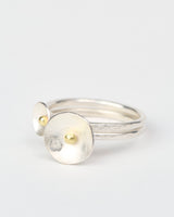 A pair of sterling silver and 18ct gold lunar rings