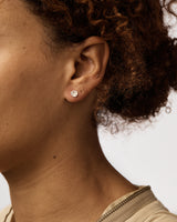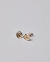 Shimara Carlow's very petite acorn cup studs feature two white diamond for subtle sparkle. Set in bright sterling silver and gold.