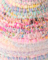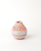 Promise Ring I serves as a departure from Sienna's usual basket-making practice, by incorporating beads. Sitting atop this hand-woven form, thousands of clear and metallic beads form a band around the vase's body. When shone at with a bright light (like the flash of a camera), the beads appear completely transparent, revealing the colours underneath. Spanning dozens of hours of work, this piece seeks to interrogate the preciousness of "women's work" and the value of the handmade in a world where so much is automated or artificial (including intelligence). Like a piece of heirloom jewellery, this is a treasured piece, to be passed down to the people you love.