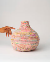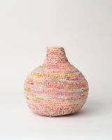 The Heirloom Urn serves as a departure from Sienna's usual basket-making practice, by incorporating beads. Sitting atop this hand-woven form, thousands of clear and metallic beads almost look like lichen forming on an ancient sculpture. When shone at with a bright light (like the flash of a camera), the beads appear completely transparent, revealing the colours underneath. Spanning hundreds of hours of work, this piece seeks to interrogate the preciousness of "women's work" and the value of the handmade in a world where so much is automated or artificial (including intelligence).