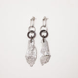These stud style drop earrings are made from hand fabricated chain and feature a large silver pendant.