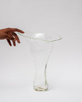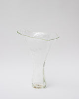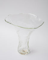 Hand blown glass vase with a blooming form. Each piece is has a unique handmade finish consistent with the nature of handmade glass work.
