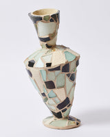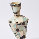 Drawn to the mixed-medium remnants discovered within the dig, Mustika has been experimenting with sculptural clay bodies covered by careful arrangements of smaller fragments. Meticulously placing each piece one by one, a terrazzo-like surface evolves through the layering of materials over time. This series showcases hand formed ceramic vessels encrusted and decorated with fragments of waste materials from a time passed and re-imagine them into something beautiful for a new use.