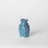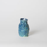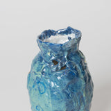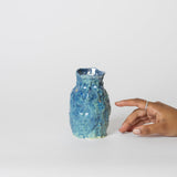 A unique handbuilt bud vase finished with colourful glaze by Tessy King. Dark blue vessel with white interior and gold lustre.