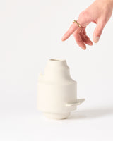 A tiered more traditional style vase. It is a one-off creation utilising slipcasting and hand building techniques. The vase is treated with liquid quartz and waxed to ensure it is watertight.