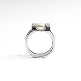 Victoria Mason - Open Window Ring 'Step' in Sterling Silver with White Fresh Water Pearl