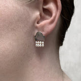Clean lines highlight the natural beauty of silver & pearls. Continuing the story of the To Hold range, the shape derives from the clear space of the range’s necklace and ring, the precious implied half, the invisible self, the dream. The striking solid top will catch the light as the gently articulated pearls emit a warm glow. As with all VMJ pieces, each part of this design has been carefully structured and meticulously finished.