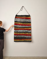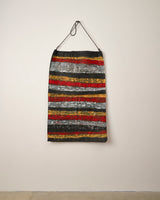 Numburindi people have used dilly bags for thousand of years for practical and ceremonial purposes, but not until recently were they produced from repurposed ghost nets and shade cloth fabric. Dilly bags, or yir in Nunggubuyu language, are customarily made from pandanus or bark fibers, and dyed or painted with shades of ochre.