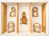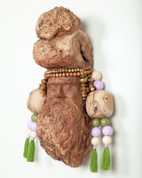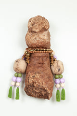At the heart of the exhibition, The Sage emerges as a hand-carved face formed from a local burl. He is the orchestrator, weaving meaning from numbers and symbols, a master of hidden knowledge and sacred patterns. Draped in strands of prayer beads of varying sizes, he embodies contemplation and mystery, measuring the immeasurable and guiding us toward deeper reflection.