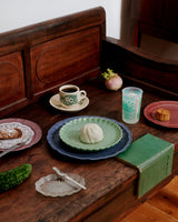A large plate with a lotus foliate rim, inspired by silver platters and Song Dynasty Longquan ware. The lotus symbolises purity, virtue, and resilience.