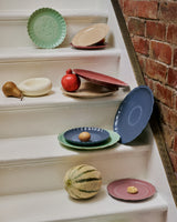 A 21cm scalloped-edge plate with a European mid-century aesthetic, featuring an embossed Ruyi cloud pattern for good fortune and harmony. An elevated stage for sides, appetisers, desserts and small meals or serving ware for tapas or cheese.