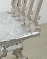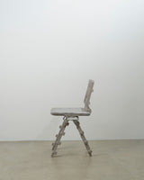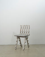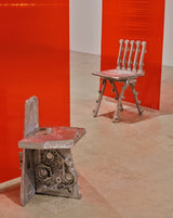 The AREJ series is part of my continued exploration into sand casting. This body of work has a particular focus on unconventional materials sourced within a 10km radius of my studio. Rejected aluminium automotive castings and tailings form the structural framework of these two chairs. The ambition is to establish a powerful visual link to the industrial lineage of the reworked materials. By repurposing discarded remnants from local foundries, each chair becomes a tangible embodiment of its industrial landscape and its heritage. Through craft and material celebration comes a transformation of industrial cast-offs into functional pieces of furniture, simultaneously showcasing alternative aesthetics and promoting sustainability. By fostering a connection between furniture design and the industrial pedigree of the materials, the work invites viewers to contemplate the interplay between industry, environment, and creative design opportunities within their immediate surrounds. – Andrew Carvolth