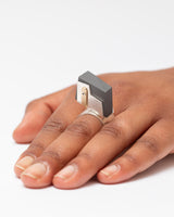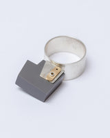 Material: sterling silver, synthetic stone (pale grey), 9K yellow gold