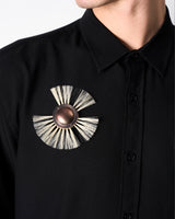 The Kugelscrubber Brooch is a large, striking statement piece that utilises the ancient craft of brush binding to create a graphic brooch, which is both simple and striking at once. The fibres are bound into a decorative, American walnut timber blank and protected by a domed, oxidised copper plate and a sterling silver back plate with a brooch fastening attached.
