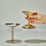 Making a toast to the others, to the future, to achievements and to the honoured, toasting brings both formality and revelry together. Playing upon the idea of bringing things together, Anna Varendorff's invertible glasses offer you choice in your toast, choice in the beverage you fancy in the moment of the 'top up'. Will you have another cocktail? Or move on to the sparkling wine? They are funny, practical and save on the post party washing up. Bottoms up!