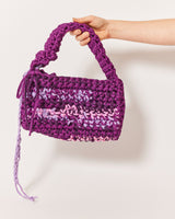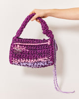 Baguette style handbag with adjustable strap. Made completely out of recycled jersey fabric.