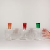 Hand blown glass decanter in angular shapes, each with a pop of colour for the stopper. A fun and unique gift