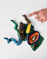 A glazed ceramic wall hanging inspired by Mesopotamian artefacts, handmade in Melbourne by Ara Dolatian.