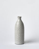 A large budvase with an intricately hand carved surface, finished in a satin matte misty white glaze.