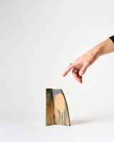 Angela Hayes is a Naarm/Melbourne-based ceramic artist. Her geometric sculptures reference classic pouring vessels. The lip, the body, the foot, and the handle have evolved from wheel thrown vessels to contemporary slab-made architectonic forms. Hayes studied Fine Art (Ceramics) at Queensland College of Art and has completed both a Bachelor and Master of Landscape Architecture at the University of Melbourne.