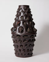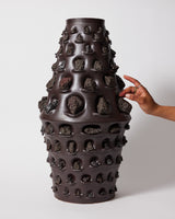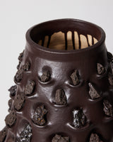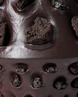 To stay engaged with the climate emergency without getting stuck in despair or outrage I need to plan and make work about the most unbearable information. This work encompasses my material research and development addressing social and environmental challenges in the ceramic industry and climate politics. It’s now well documented that mitigating climate change requires political action, not individual behavior change. A tongue in cheek reference to Australian Slang, Triple Cooked features three coil-built vessels made of recycled clay, named after three recent climate headlines. They’re glazed using only reclaimed landscaping basalt. The same rock is broken into pieces, tumbled and molded into each vessel before a single firing. This work is inspired by the aesthetics of fossil fuels, in particular coal rocks and deformed landscapes. It aims to spread political awareness using the moments of pause and curiosity created by innovative craftsmanship. – Claire Ellis