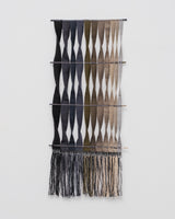Claudia Bloxsome's practice is rooted in the transformative potential of weaving. Inspired by the rich history of weaving, which has both sustained societies through utilitarian constraints and evolved into a contemporary art form, weaving is a lifelong pursuit for Claudia, offering endless possibilities for experimentation. Through meticulous manipulation of fibres, she explores the interplay of time, sentiment and care. Often incorporating metal and timber as scaffolding to elevate woven cloth into sculptural forms.