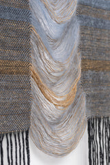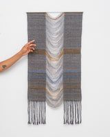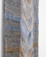 Claudia Bloxsome's practice is rooted in the transformative potential of weaving. Inspired by the rich history of weaving, which has both sustained societies through utilitarian constraints and evolved into a contemporary art form, weaving is a lifelong pursuit for Claudia, offering endless possibilities for experimentation. Through meticulous manipulation of fibres, she explores the interplay of time, sentiment and care. Often incorporating metal and timber as scaffolding to elevate woven cloth into sculptural forms.