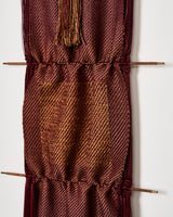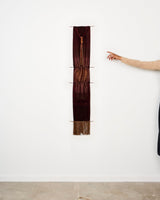 Claudia Bloxsome's practice is rooted in the transformative potential of weaving. Inspired by the rich history of weaving, which has both sustained societies through utilitarian constraints and evolved into a contemporary art form, weaving is a lifelong pursuit for Claudia, offering endless possibilities for experimentation. Through meticulous manipulation of fibres, she explores the interplay of time, sentiment and care. Often incorporating metal and timber as scaffolding to elevate woven cloth into sculptural forms.