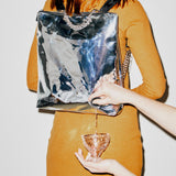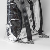 Material: vinyl, cotton lining, metal zip, metal chain, metal hardware, wine bladder