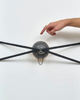 Isabel Avendaño Hazbún continues her focus on using material waste sustainably. Through punk-inspired experimentalism and iconography she reboots her use of tyre inner tubes to create an aesthetic of rips, fractures and tensions by playing with rubber’s intrinsic qualities of friction and elasticity to pull, tighten, restrain and release in this series of wall lights and a woven rug.