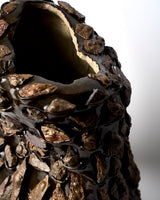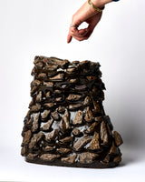 Exhibited at Linden New Art in 2024 as part of Facts of Matter presented by Clay Matters. Its aim was to connect with audiences emotionally and intellectually on the topic of the environmental and climate crises, advocating for sustainable action against climate change and environmental damage, and promoting hope and optimism. My extensive research into reclaimed materials and my aim to encourage political change resulted in this work highlighting a successful climate protest which gives me hope. Victorian slate by-products sourced from a quarry are fused to a form inspired by Rock Island Bend on the Franklin River where the protests in 1982 prevented a destructive dam from being built and led to the creation of The Greens. The photograph of Rock Island Bend that was used as a reference for this sculpture was taken by Peter Dombrovskis. The image became famous in the early 1980s when it was used as part of the campaign against the proposed damming of the Franklin River. The photograph shows a part of the river that would have been submerged by the proposed dam and the image is credited with playing a large role in preventing the dam's construction This sculpture is hand-built, glazed using only the same rock as the attachments and single fired.