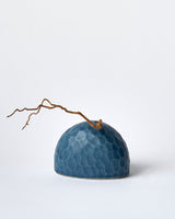 A small, landscape-inspired, hand-built budvase glazed in a deep cobalt blue satin matte glaze.