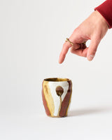 This piece is a one off, unique, and functional tumbler. Each one a unique object, made intuitively with love. When used, they create a moment for connection – with someone else, with the moment, with the sustenance and beauty they are holding space for.